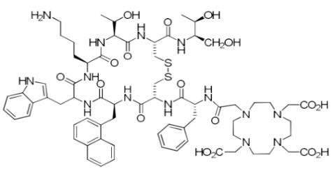 One Letter Code | DOTA-d-FC-1-Nal-d-WKTCT-ol(Disulfide bridge: Cys2-Cys7) | Three Letter Code | DOTA-D-Phe-Cys-1-Nal-D-Trp-Lys-Thr-Cys-Thr-ol(Disulfide bridge: Cys2-Cys7) |