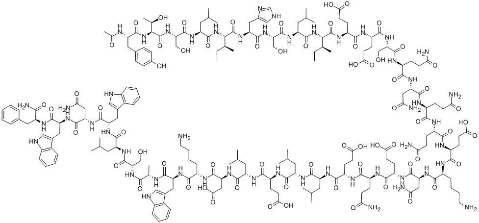 | One Letter Code | N/A | Three Letter Code | Ac-Tyr-Thr-Ser-Leu-Ile-His-Ser-Leu-Ile-Glu-Glu-Ser-Gln-Asn-Gln-Gln-Glu-Lys-Asn-Glu-Gln-Glu-Leu-Leu-Glu-Leu-Asp-Lys-Trp-Ala-Ser-Leu-Trp-Asn-Trp-Phe-NH2 |