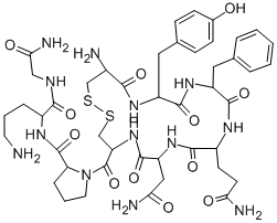 | One Letter Code | N/A | Three Letter Code | H-Cys-Tyr-Phe-Gln-Asn-Cys-Pro-Orn-Gly-NH2 (Disulfide bridge:1-6) |