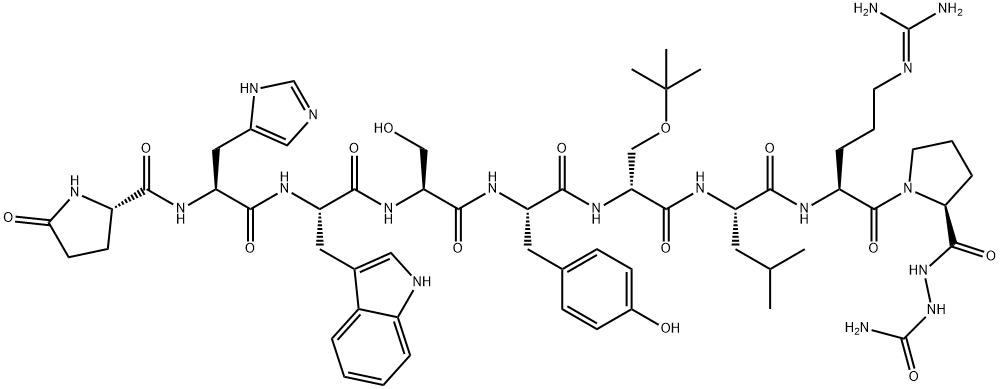 | One Letter Code | N/A | Three Letter Code | Pyr-His-Trp-Ser-Tyr-D-Ser(tBu)-Leu-Arg-Pro-Azagly-Gly-NH2 |