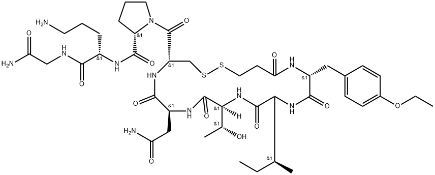 | One Letter Code | N/A | Three Letter Code | c[Mpr-D-Tyr(OEt)-Ile-Thr-Asn-Cys]-Pro-Orn-Gly-NH2 |